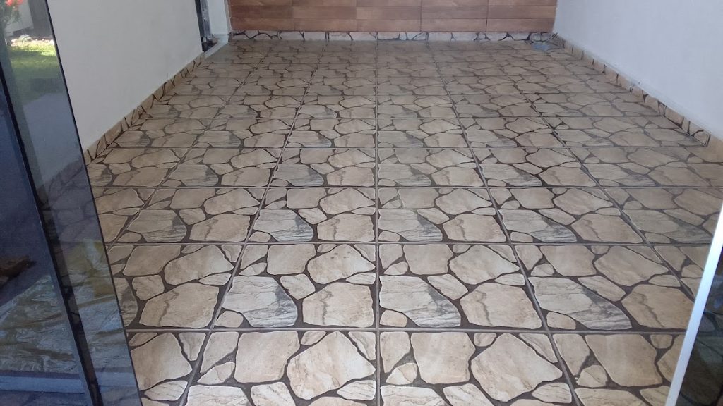 Vamos usar como exemplo esse piso, trata-se de uma cerâmica porosa, na qual aplicamos uma massa niveladora por cima com finalidade de nivelar o piso e ao mesmo tempo sumir com os rejuntes.