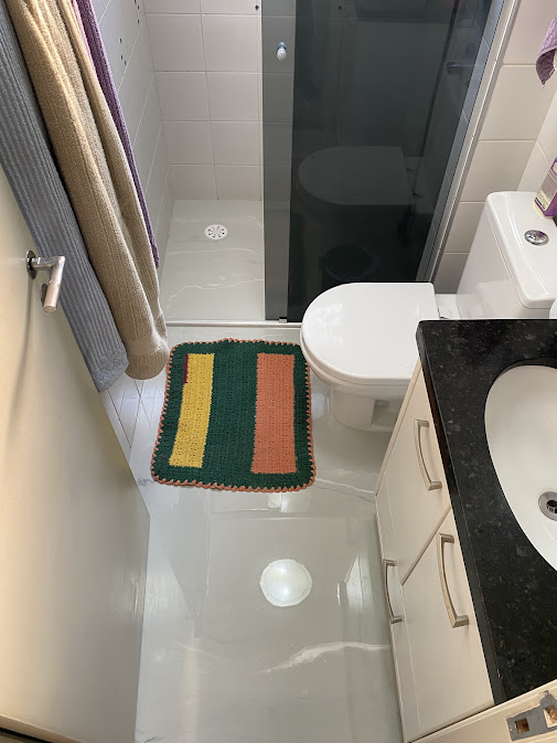 Por exemplo, ao realizar a aplicação em um banheiro, que geralmente leva cerca de 3 dias, dedicamos uma hora apenas à aplicação da resina epóxi, enquanto o restante do tempo é dedicado à preparação meticulosa da superfície. Essa preparação inclui a correção de imperfeições, o nivelamento adequado e a limpeza completa da área para garantir a adesão perfeita da resina e o acabamento desejado pelo cliente.