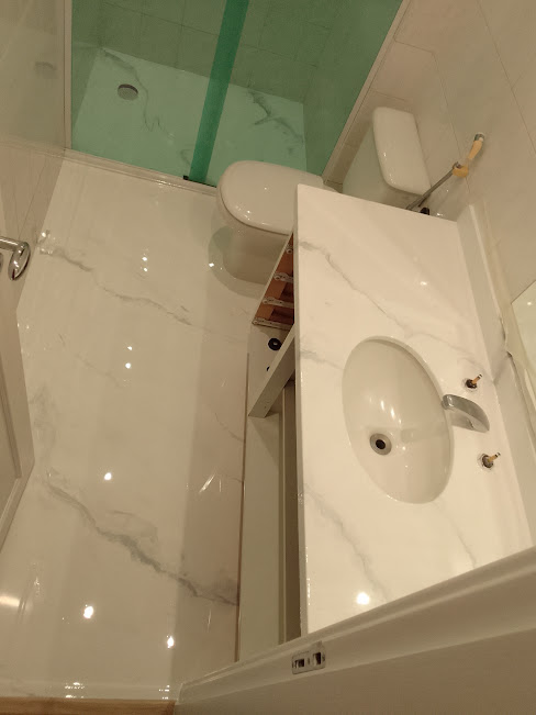 Resina epóxi banheiro marmorizado branco com cinza. Tempo de aplicação e cura