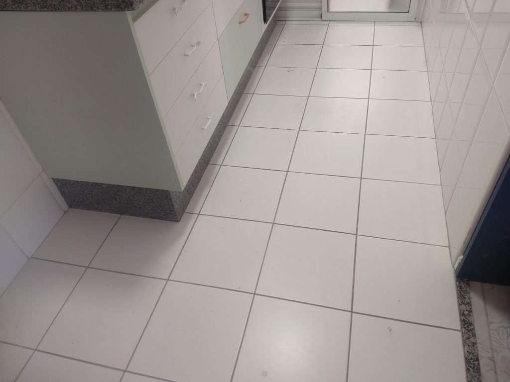 Nessa foto temos o antes e depois de um piso cerâmico que foi feito porcelanato liquido sobre ele. Era uma cerâmica antiga, pequena e cheia de rejuntes.